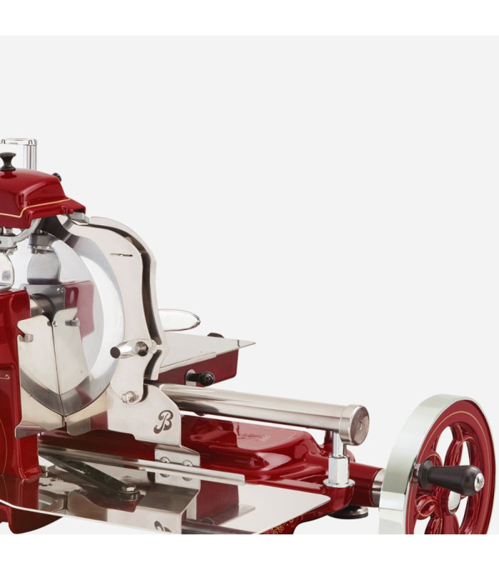 La Berkel Tribute cortafiambres con volante es la reedición del histórico Berkel modelo B “Indianina” de los años 20, un homenaje a la tradición y a la elegancia que marcó la historia del corte profesional. Diseñada para quienes buscan uso intensivo con estética icónica, combina rendimiento técnico y diseño clásico en una pieza única.